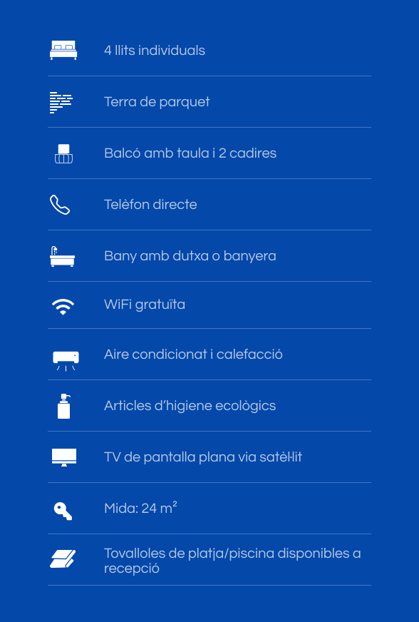 Espaiosa i confortable, pensada per a petits grups o famílies. Els tres llits individuals ofereixen comoditat i independència.